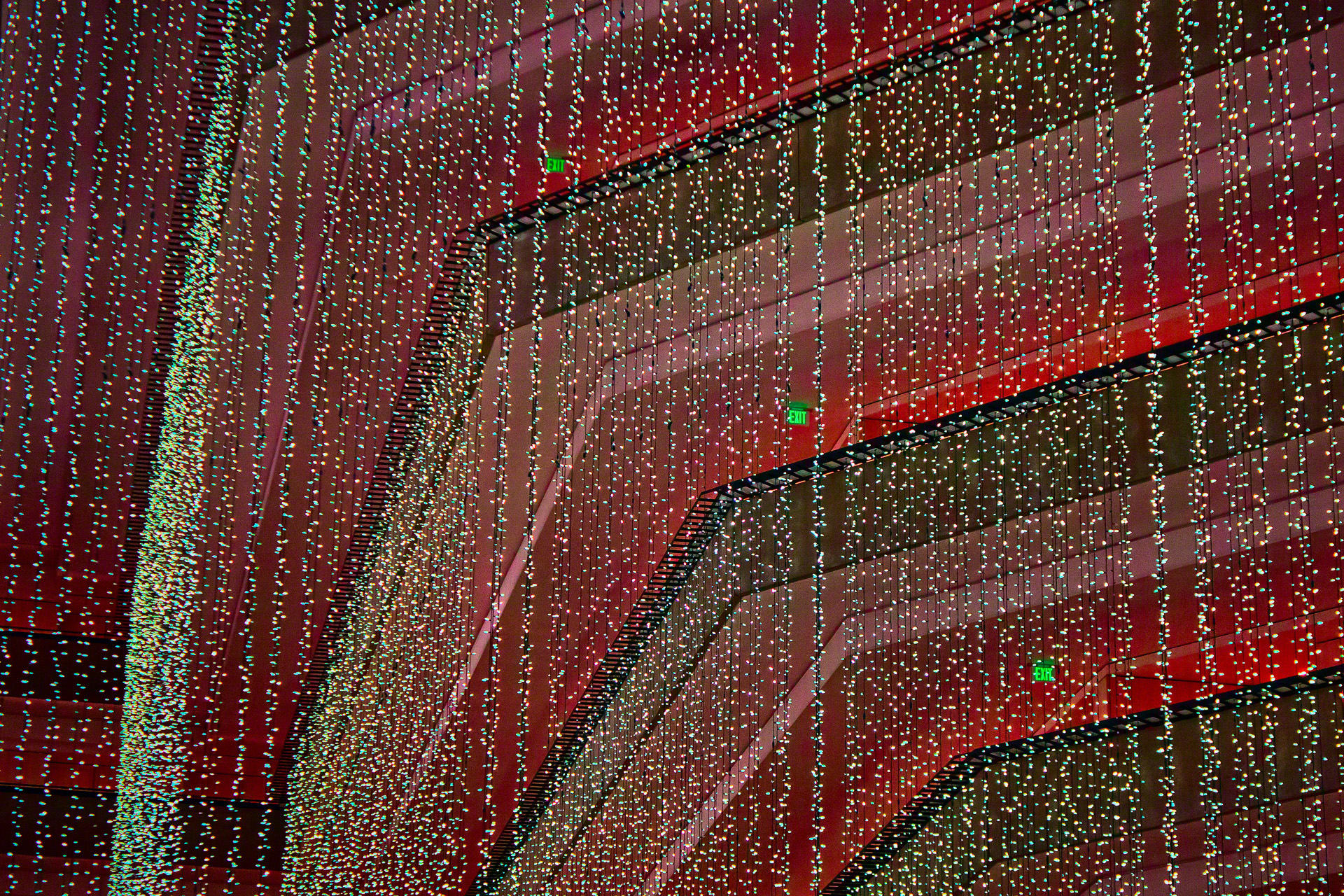 My goal was to enhance the colors and to create a holiday red-and-green look to the scene. At the same time, I wanted to maintain the green in the small Exit signs. (Yes, you need to click and look at the larger version!)